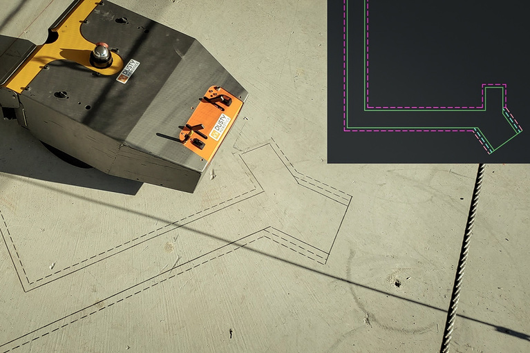 OLogic社は、デジタル図面を読み込み、人間の約5倍の速さで図面を床に転写する、Dusty社のロボット・FieldPrinterの設計をしました。